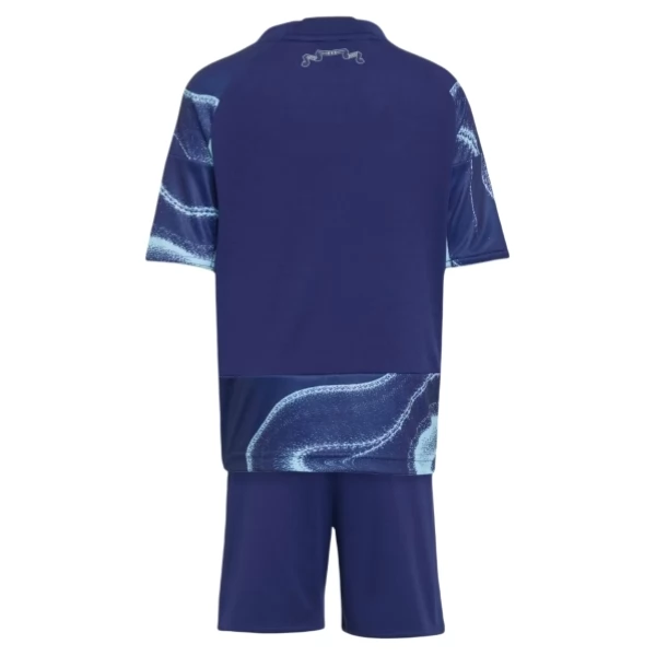 Dieser Auswärts-Trikotsatz für Kinder 2025/26 (bestehend aus Trikot und Shorts) greift einen markanten Look in dunklem Blau auf und eignet sich gut für Spieltage, Training, Freizeit und den Alltag junger Fans. Das Set wirkt modern und dynamisch und passt zu Kindern, die einen auffälligen Fußball-Look mit zeitgemäßer Ausstrahlung suchen.