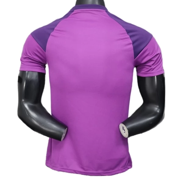 Das Argentinien Torwarttrikot 2025 fällt mit seinem kräftigen Lilaton sofort ins Auge. Feine grafische Muster auf der Vorderseite verleihen dem Design zusätzliche Dynamik, während weiße und goldfarbene Details für einen markanten Kontrast sorgen. So entsteht ein moderner Look, der sich klar vom klassischen Auftritt der Feldspieler abhebt.