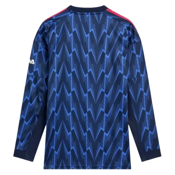 Dieses Arsenal Auswärtstrikot 2025-26 (Langarm) greift einen markanten Auswärtslook in dunklem Navy und Royalblau auf. Das Design wirkt modern, sportlich und gut wiedererkennbar und eignet sich für Spieltage, Fan-Treffen und den Alltag bei kühlerem Wetter.