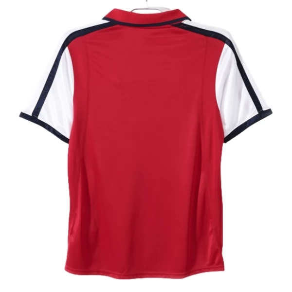 Das Arsenal Retro Heimtrikot 2001-02 zeigt einen klassischen Heimlook mit roter Front und weißen Ärmeln. Schwarze Streifen an Schultern und Ärmeln verleihen dem Design zusätzliche Struktur und sorgen für einen markanten Auftritt. Der Kragen mit V-Ausschnitt rundet den Look sportlich ab und greift den typischen Stil der frühen 2000er-Jahre auf.