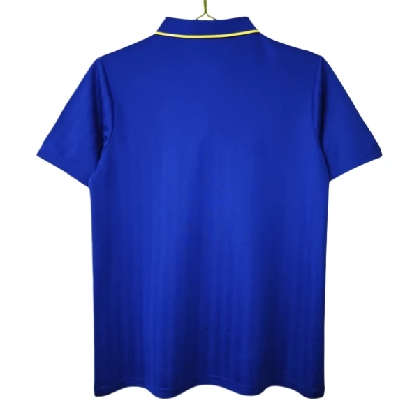 Das Chelsea Retro Heimtrikot 1995-97 zeigt einen klassischen Heimlook in Blau mit weißen und gelben Kontrasten. Die kräftige Grundfarbe sorgt für einen klaren und traditionsreichen Auftritt, während der Polokragen mit weißer Knopfleiste und gelben Details das Design stilvoll ergänzt. Die reduzierte Gestaltung verleiht dem Modell eine elegante und zeitlose Wirkung.