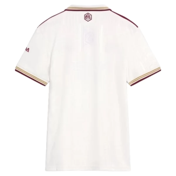 Dieses Damen-Ausweichtrikot 2025/26 greift einen markanten Look in Weiß, Bordeaux und Gold auf und eignet sich für Spieltage, Fan-Treffen und den Alltag. Das Design wirkt klassisch und zugleich modern und passt zu einem auffälligen Fußball-Look mit klarer Linienführung.