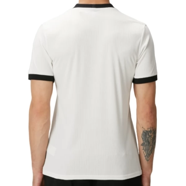 Das Deutschland Heimtrikot 2025 125 Jubiläum setzt auf einen besonders reduzierten und klassischen Look. Die weiße Basis wird durch schwarze Abschlüsse an Kragen und Ärmeln ergänzt und sorgt für eine klare, traditionsbewusste Gesamtwirkung. So entsteht ein Heimtrikot, das bewusst auf Zurückhaltung setzt und den Jubiläumscharakter stilvoll unterstreicht.