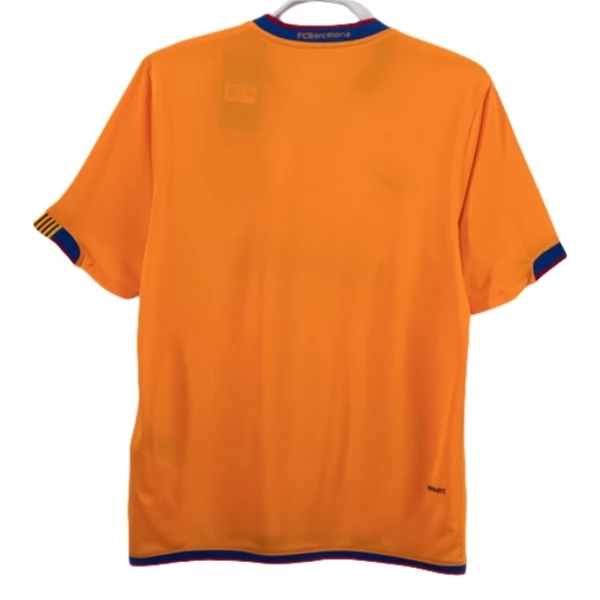 Das FC Barcelona Retro Auswärtstrikot 2006-07 zeigt einen auffälligen Auswärtslook in Orange mit blauen Kontrasten. Die leuchtende Grundfarbe sorgt für eine starke visuelle Präsenz, während die dunklen Details an Kragen, Ärmeln und Saum das Design klar einrahmen. Der V-Kragen unterstreicht den sportlichen Charakter und verleiht dem Modell einen markanten Auftritt.