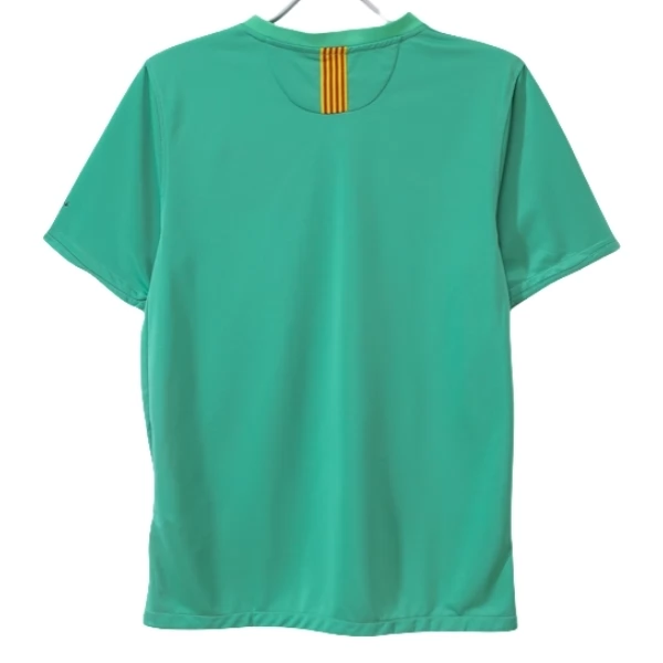 Das FC Barcelona Retro Auswärtstrikot 2010-11 zeigt einen frischen Auswärtslook in Türkis mit einem kontrastreichen Einsatz auf der Brust. Die helle Grundfarbe sorgt für einen modernen und auffälligen Auftritt, während die blau-roten Elemente im oberen Frontbereich den typischen Vereinscharakter aufgreifen. Der Rundkragen fügt sich schlicht in das Gesamtbild ein und unterstreicht den sportlichen Stil dieser Saison.