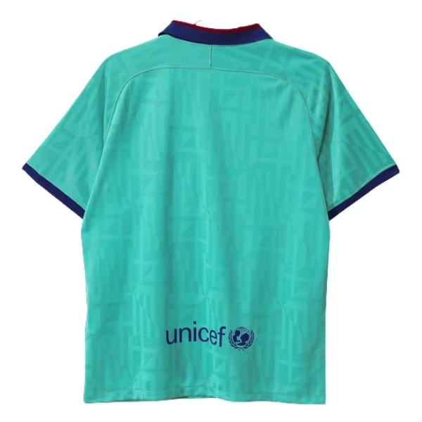 Das FC Barcelona Retro Auswärtstrikot 2019-20 zeigt einen frischen Auswärtslook in Türkis mit dunkelblauen und roten Kontrasten. Die helle Grundfarbe sorgt für einen modernen und auffälligen Auftritt, während der Polokragen dem Design eine klassische Note verleiht. Die feine Musterstruktur auf der Vorderseite rundet das Gesamtbild ab und gibt dem Modell zusätzlichen Charakter.