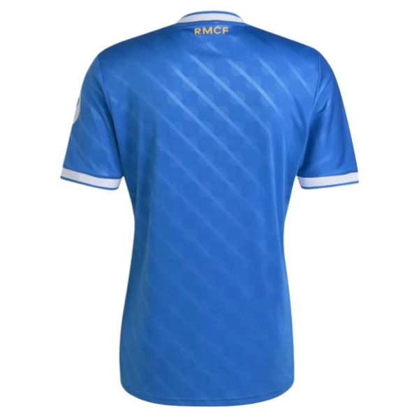 Optisch setzt das Trikot auf eine satte blaue Basis, die von einer dezenten Musterung überzogen ist, deren Konturen an das Sitzdesign im Stadion erinnern. Abgestimmte weiße Details an den Abschlüssen sowie das sauber in Weiß verarbeitete Brustdetail fügen sich nahtlos in den puristischen, eleganten Gesamtlook ein.
