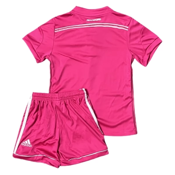 Dieses Real Madrid Retro trikot Set für Kinder greift den Auswärts-Look der Saison 2014/15 auf, einer Spielzeit, in der kräftiges Pink mit weißen Kontrasten kombiniert wurde. Gerade diese Farbkombination sorgt für einen auffälligen und sofort wiedererkennbaren Auftritt, der sich klar von klassischen Heimdesigns abhebt.