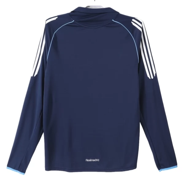Charakteristisch für diese Auswärts-Ausführung sind der dunkle Kragen, die weißen Schulterstreifen und die hellblauen Linien, die sich über Schultern und Seiten ziehen. Gerade diese Gestaltung verleiht dem Design eine technische und dynamische Wirkung, ohne überladen zu sein. Wenn du ein Real Madrid Auswärtstrikot suchst, das den Stil dieser Zeit mit klaren Linien und klassischer Farbgebung aufgreift, ist dieses Modell besonders passend.