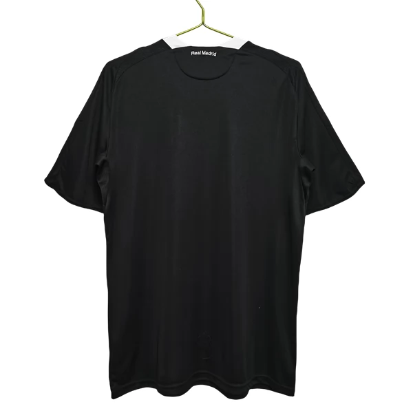 Charakteristisch für diese Auswärts-Ausführung sind der helle V-Ausschnitt, die weißen Schulterstreifen und die insgesamt sehr klare Frontgestaltung. Gerade diese Kombination verleiht dem Modell einen sportlichen und geradlinigen Look, der gut zur Designsprache der späten 2000er Jahre passt. Wenn du ein Real Madrid Auswärtstrikot suchst, das über Schwarz-Weiß-Kontraste und einen klaren Aufbau wirkt, ist diese Ausführung besonders passend.