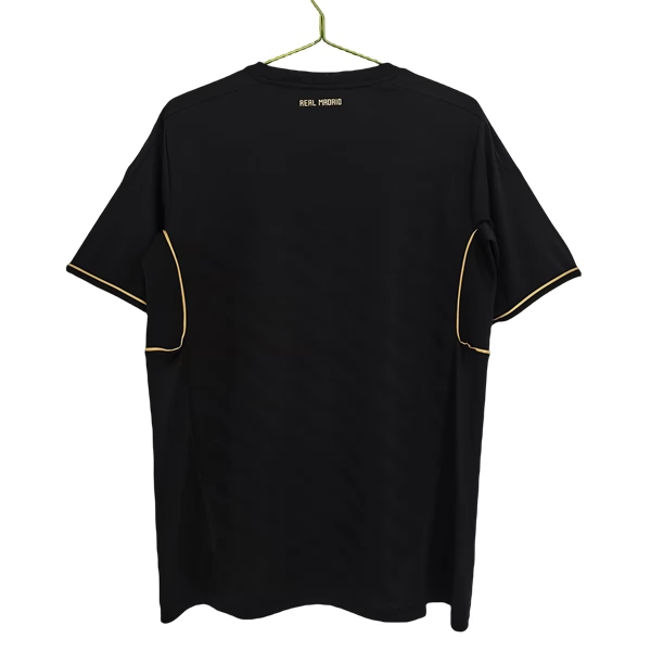 Typisch für diese Auswärts-Ausführung sind die goldenen Schulterstreifen, die feinen goldenen Linien an den Seiten und Ärmeln sowie die insgesamt sehr ruhige Front. Gerade diese Kombination sorgt für einen kontrollierten, eleganten Look, der sich deutlich von auffälligeren Auswärtsdesigns anderer Jahre unterscheidet. Wenn du ein Real Madrid Auswärtstrikot suchst, das stark über Farbe und klare Details wirkt, ist diese Ausführung besonders passend.