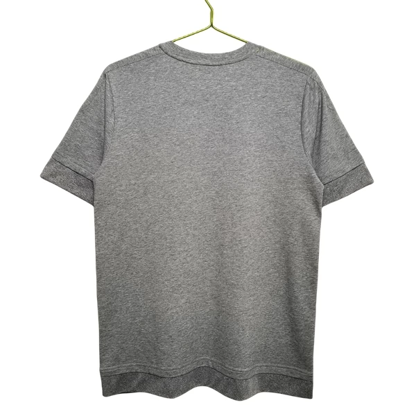 Dieses Real Madrid Retro trikot greift den Auswärts-Look der Saison 2015/16 auf, einer Spielzeit, in der das Design bewusst moderner und urbaner wirkte als viele klassische Auswärtslooks des Vereins. Die graue Grundfarbe in Verbindung mit leuchtenden gelben Akzenten sorgt für einen Auftritt, der sich klar von den üblichen Farbkonzepten anderer Jahre abhebt.