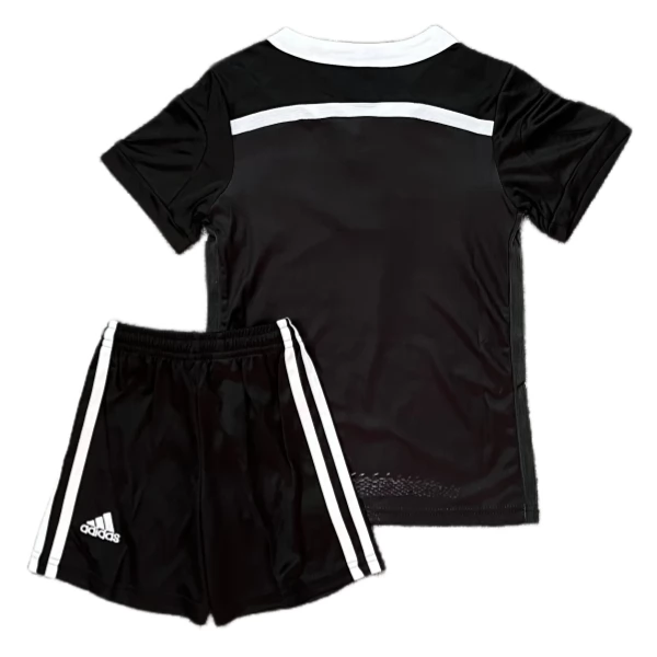 Dieses Real Madrid Retro trikot Set für Kinder greift den Ausweich-Look der Saison 2014/15 auf, einer Spielzeit, in der schwarze Grundfarben mit markanten weißen Kontrasten und auffälligen Grafikelementen kombiniert wurden. Gerade diese Gestaltung sorgt für einen eigenständigen und sofort wiedererkennbaren Auftritt, der sich klar von klassischen Heimdesigns abhebt.