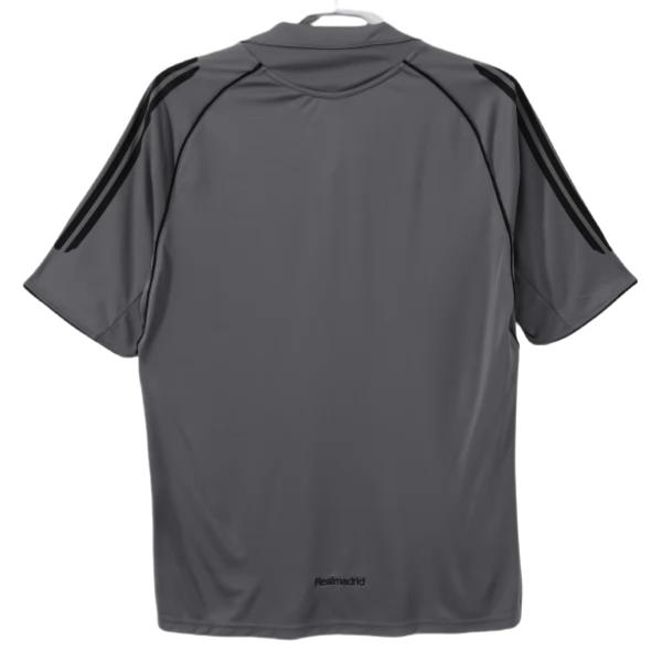 Typisch für diese Ausweich-Ausführung sind der V-Ausschnitt, die schwarzen Linien entlang der Schultern und Seiten sowie die insgesamt sehr reduzierte Frontgestaltung. Gerade diese Kombination sorgt für einen klaren, technischen Look, der gut zur Mitte der 2000er Jahre passt. Wenn du ein Real Madrid Ausweichtrikot suchst, das durch Zurückhaltung und klare Konturen wirkt, ist diese Ausführung besonders passend.
