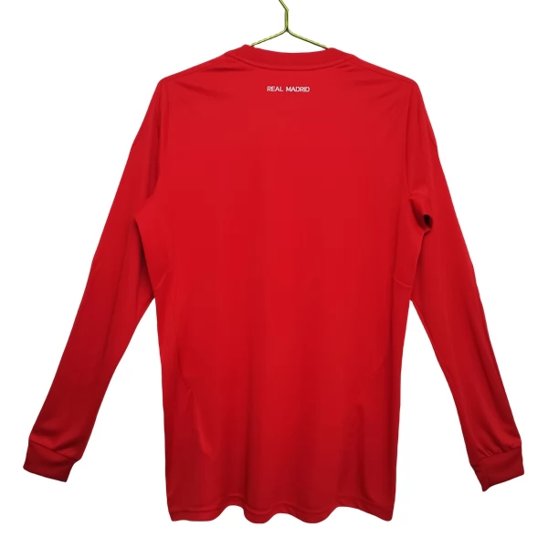Dieses Real Madrid Retro trikot Langarm greift den Ausweich-Look der Saison 2011/12 auf, einer Spielzeit, in der kräftige Farben und klare Kontraste für besonders auffällige Alternativdesigns sorgten. Gerade in der Langarm-Version wirkt das intensive Rot noch geschlossener und verleiht dem Modell einen besonders markanten, energischen Auftritt.