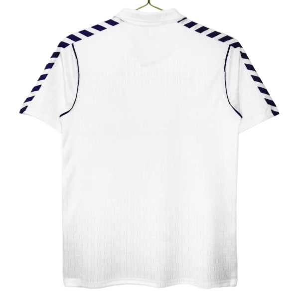 Dieses Real Madrid Retro trikot greift den Heim-Look der Jahre 1988 bis 1990 auf, einer Phase, in der das klassische Weiß mit klaren violetten Akzenten kombiniert wurde. Gerade diese reduzierte, aber markante Gestaltung verleiht dem Modell einen eleganten und traditionsreichen Auftritt, der den Stil der späten 80er Jahre sehr gut widerspiegelt.