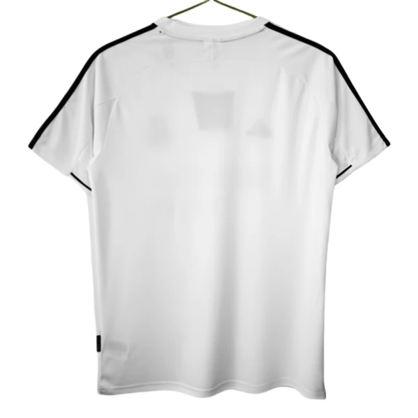 Charakteristisch für diese Heim-Ausführung sind die schwarzen Schulterstreifen, der schlichte Rundkragen mit mittigem Einschnitt und die insgesamt ruhige Front. Im Vergleich zu späteren Jahren wirkt das Design bewusst zurückgenommen und konzentriert sich ganz auf klare Kontraste und eine saubere Linienführung. Wenn du ein Real Madrid Heimtrikot suchst, das den Stil dieser Ära unmittelbar aufgreift, ist dieses Modell besonders passend.