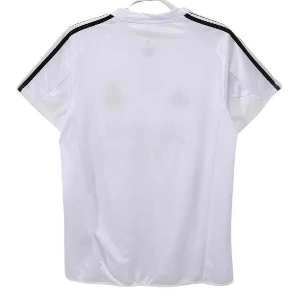 Charakteristisch für diese Heim-Ausführung sind die schwarzen Schulterstreifen, der schlichte Kragenbereich und die insgesamt ruhige Frontgestaltung. Im Vergleich zu späteren Jahren wirkt das Design deutlich reduzierter und konzentriert sich stärker auf klare Kontraste statt auf auffällige grafische Elemente. Wenn du ein Real Madrid Heimtrikot suchst, das den Stil der frühen 2000er unmittelbar aufgreift, ist dieses Modell besonders passend.