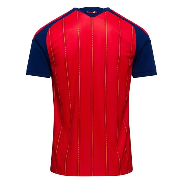 Das Spanien Heimtrikot zur WM 2026 setzt auf einen kräftigen Rotton und verbindet ihn mit dunklen Ärmeln und feinen vertikalen Linien auf der Vorderseite. Die klare Farbwirkung sorgt für einen sofort erkennbaren Heim-Look, während die dunklen Kontraste dem Design zusätzliche Tiefe verleihen. So entsteht ein Trikot, das klassisch, markant und zugleich modern wirkt.